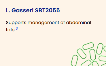 On the other hand, L. Gasseri SBT2055 in Provitalize has been studied to support abdominal fat management3In a 2013 Japan Study, a group of 210 adults took L. Gasseri SBT2055 daily and had their abdominal visceral fat areas measured over a 3-month period.